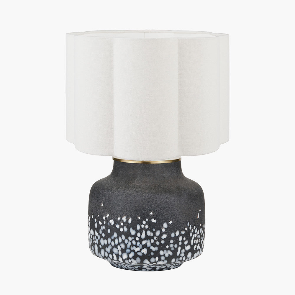 Etna Black and White Glass Table Lamp with Bloom 40cm Scalloped Handloom Shade