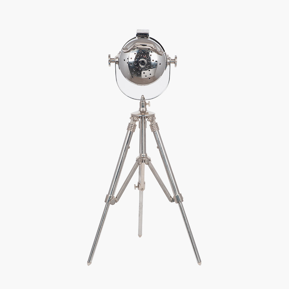 Nautical meets industrial with the Marine Nickel Searchlight Table Lamp – a bold, directional design inspired by vintage marine lighting. Finished in high-shine nickel and crafted in India, this functional statement piece features an adjustable tripod base and rotatable lamp head, letting you spotlight exactly where the mood takes you.