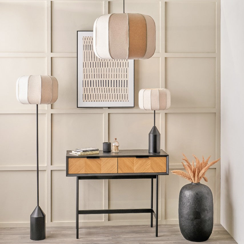The Oscar Table Lamp brings a perfectly balanced mix of structure and softness to your space. With its sleek black metal base and structured natural linen shade, this piece delivers modern edge with an organic twist. The contrast between the clean lines of the base and the tactile texture of the shade creates a sophisticated look that works effortlessly across living rooms, bedrooms, or hallway consoles.